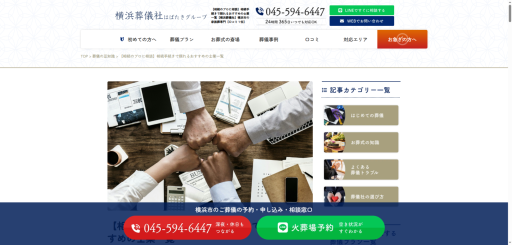 横浜市の葬儀社である横浜葬儀社はばたきグループの運営するメディア「葬儀の豆知識」内の記事「【相続のプロに相談】相続手続きで頼れるおすすめの士業一覧」に当社が掲載されました。
