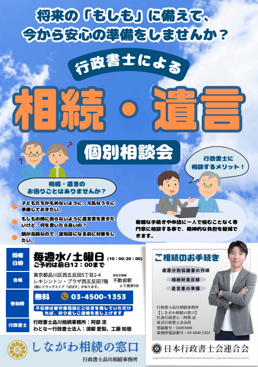 しながわ相続の窓口@西五反田にて 毎週水曜日・土曜日に無料相談会を開催しております。